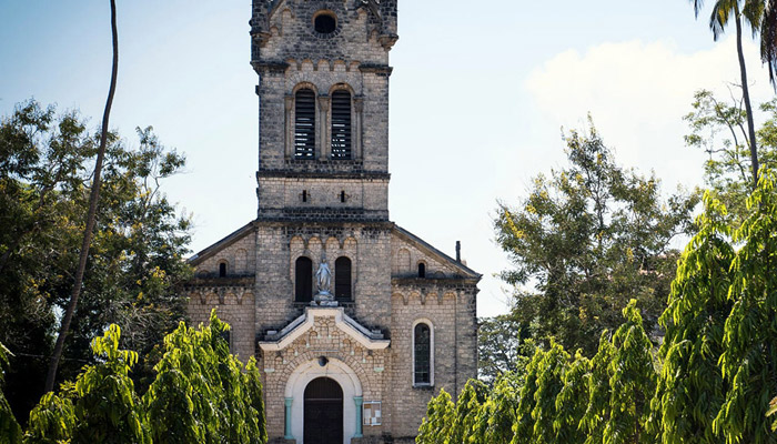 The old tower of the first Catholic Church in Each Africawas first built in 1872, and the Second Church built in 1909 to 1914. It is in this church where the body of Dr. Livingstone kept before transferred to Zanzibar thenWestminster Abbey in London, England for burial while his heart were buried under Mvula tree now known as the site of the Livingstone Memorialin Chief Chitambo's Village in North Rhodesia now known as Zambia. At the surroundings of the Church in Bagamoyo there is one of the oldest Baobab tree, cemeteries for Catholic, Germans & Indians. Dr. Livingstone tower, Old Fathers' house and the Cross at the Beach. The Museum at the church is equipped with the information about the slave trade, missionaries, life of the people and some collections of artifacts of the indigenous tribes.